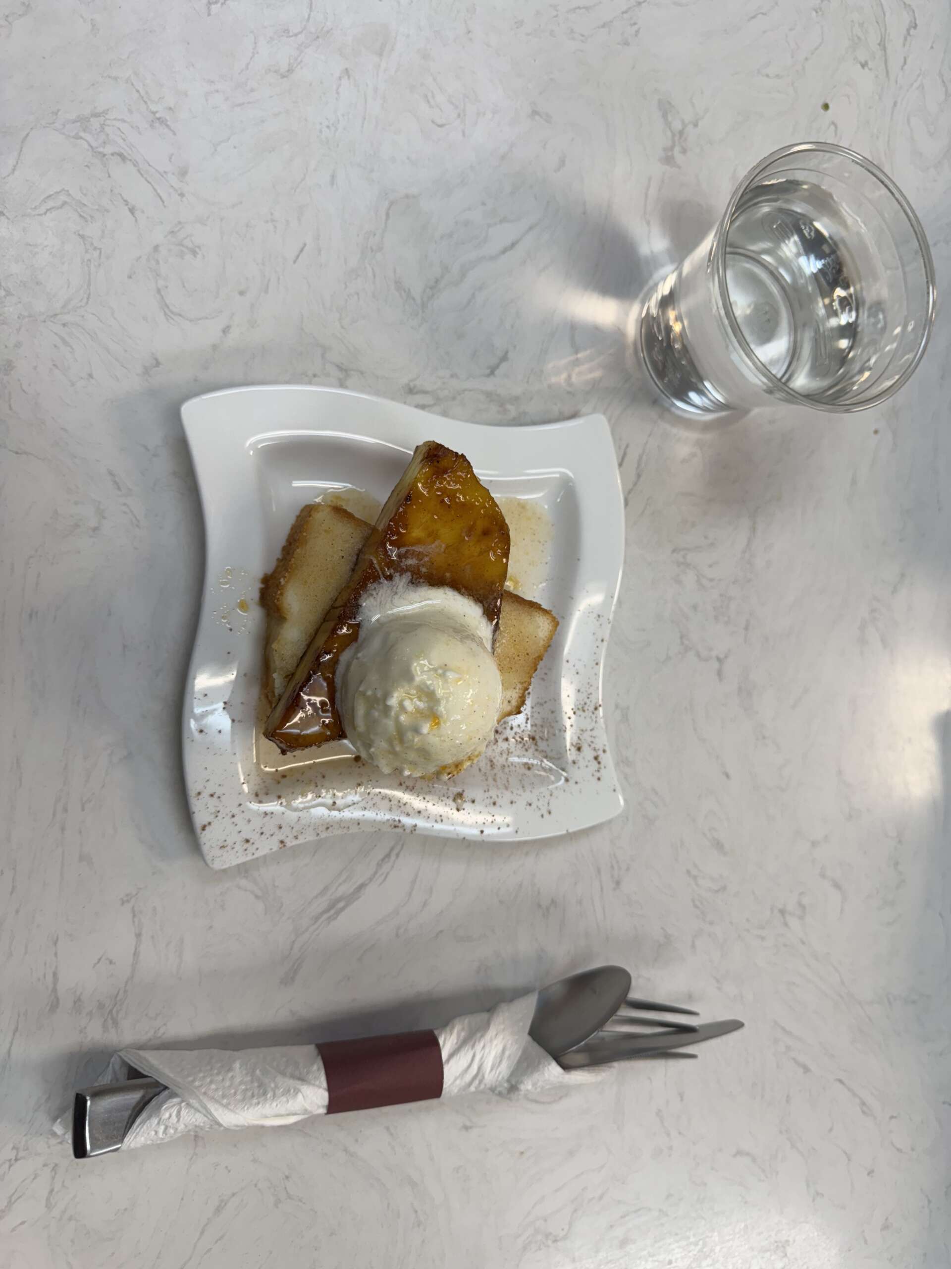 Cast Iron Grilled Pineapple and pound cake with vanilla ice cream
